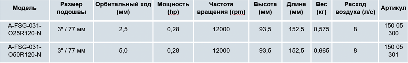 Орбитальный ход: 2,5 / 5,0 мм (зависит от модели)